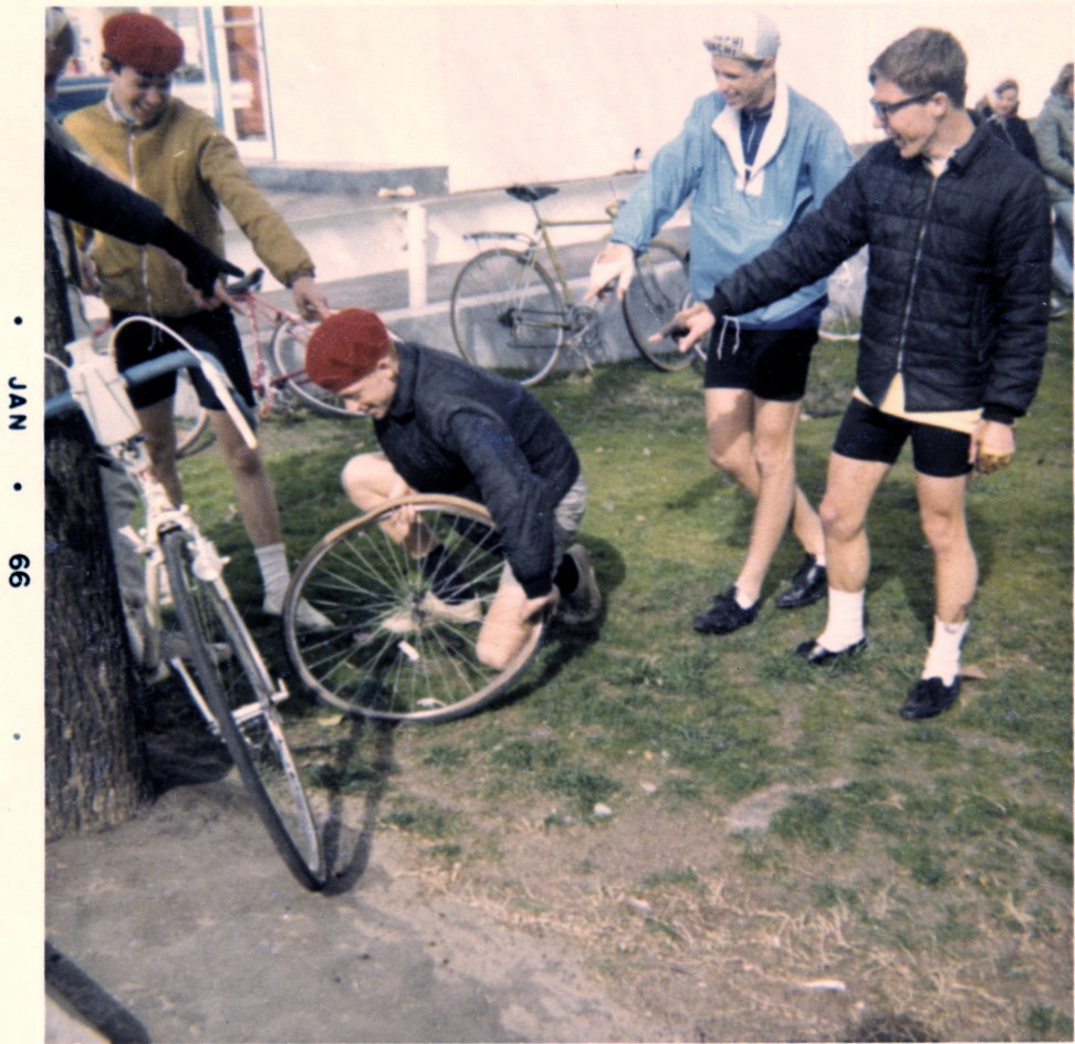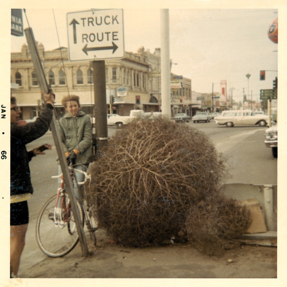 Eldon Rosenow is the member cut off by the left side of the picture, Cindy Leighton on her bike next to the tumbleweed.