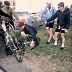 The date printed on the prints was Jan66, the ride could have been any time earlier than that. The pictures are ordered based on the number on the negative. Click on any picture to see it at full size. Click on the Modesto Roadmen icon to the left to return to the home page, or on this link to return to the list of pictures.