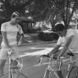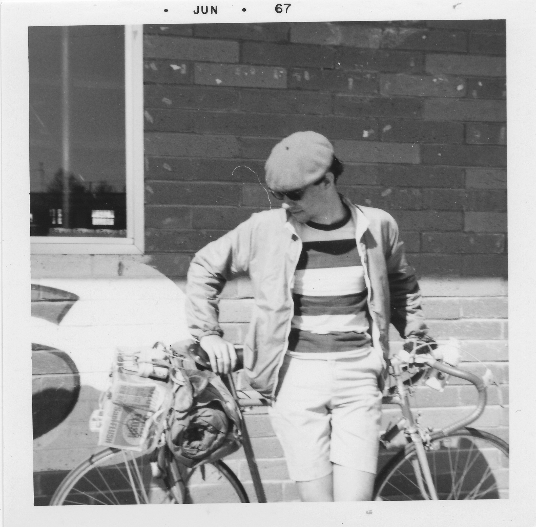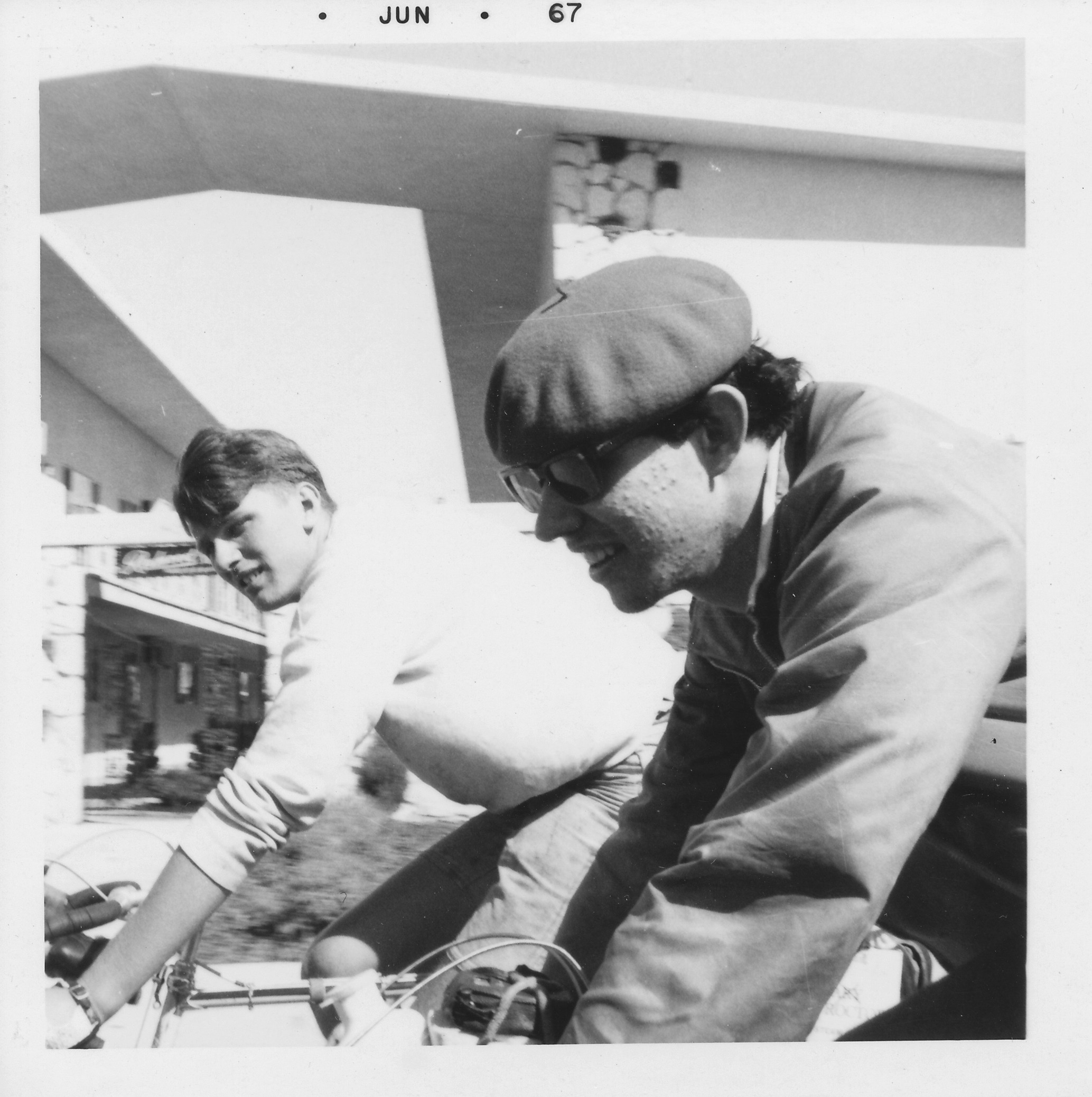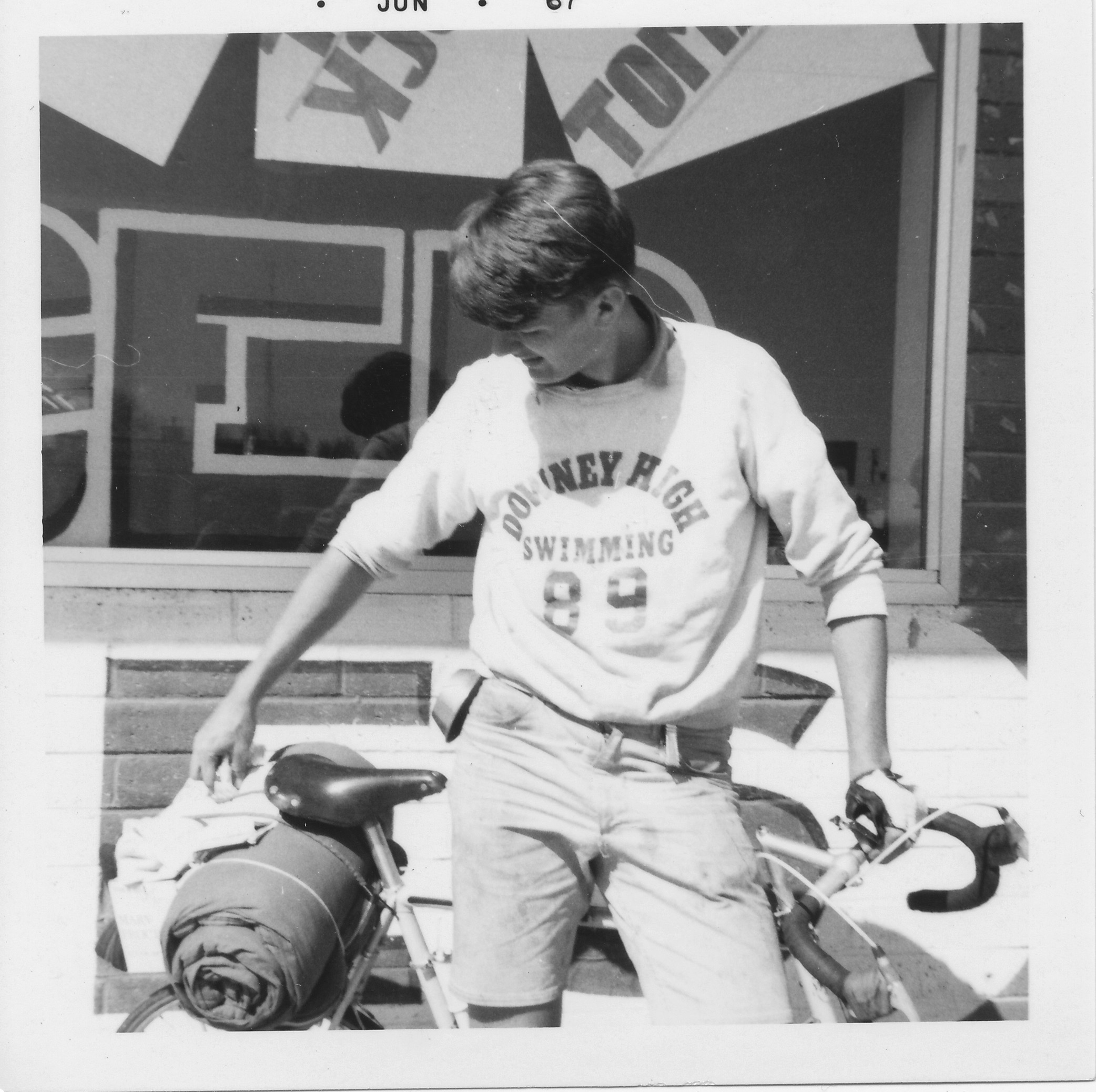 In June of 1967, just before graduating High School and leaving for my summer in Europe, I loaded up my Instamatic 250 with black and white film, grabbed whomever was hanging out with me, and posed some pictures. I think this took place over more than one day. The "loaded" touring bikes were a fake, nobody was going anywhere, we just threw some stuff on the rack to make it look like a tour. Not everyone happened to have their own bike with them, some people posed with a borrowed bike.