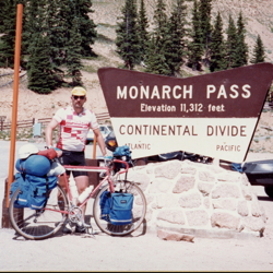Gordon Jewett got the long distance award for riding from Modesto to Washing DC. Here he is on the Continental Divide. (Picture supplied by Michael Jewett.)