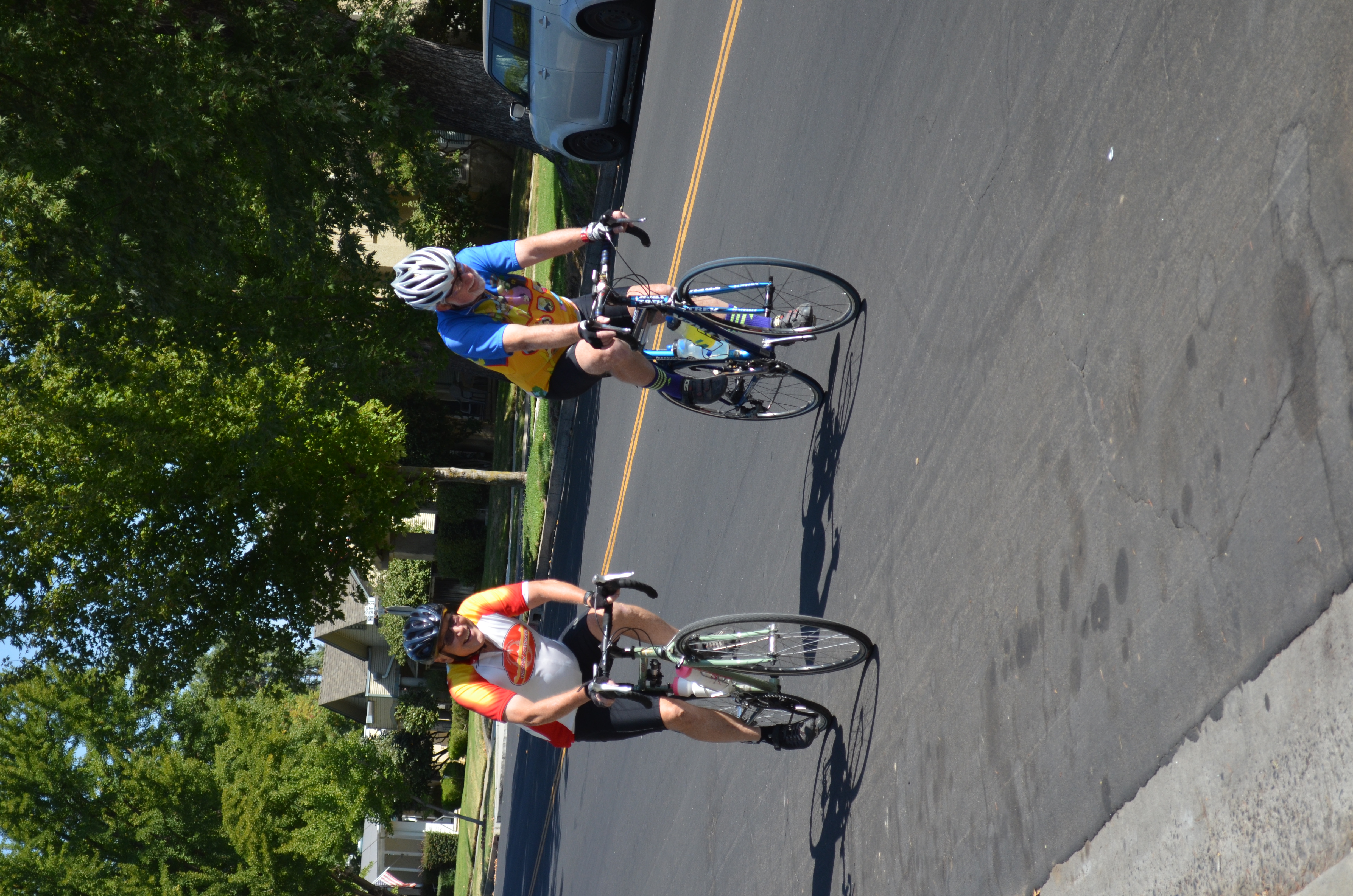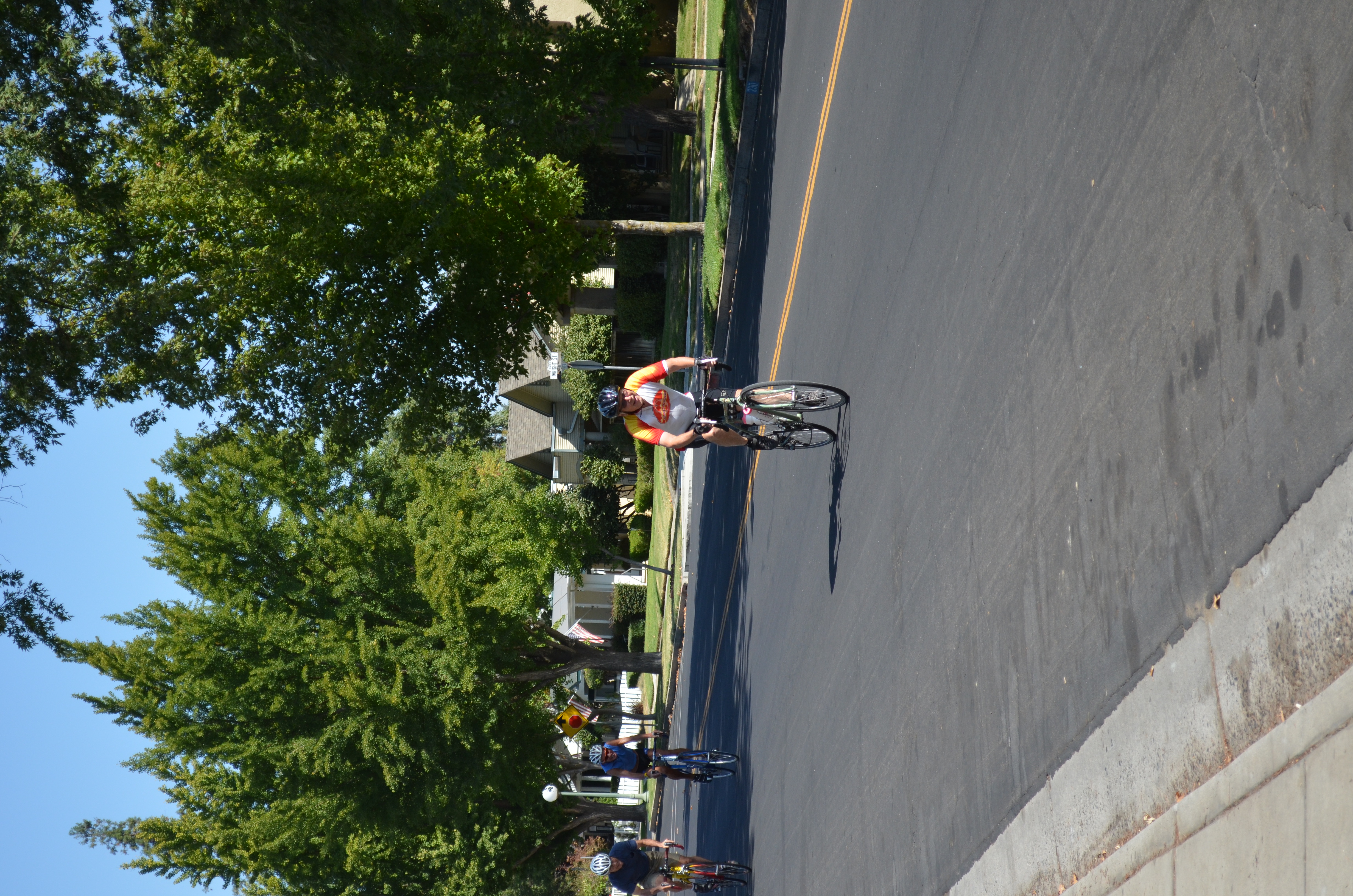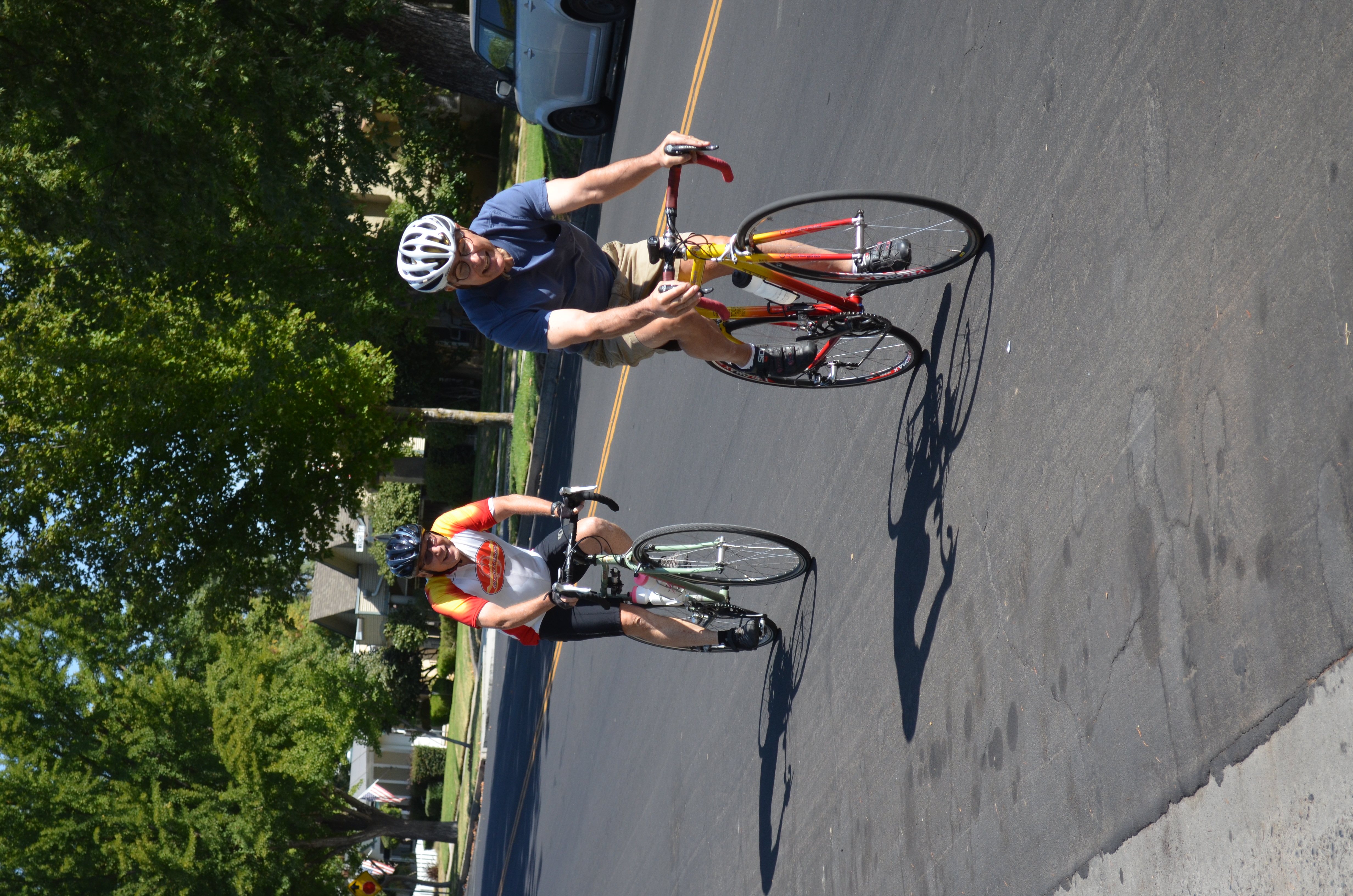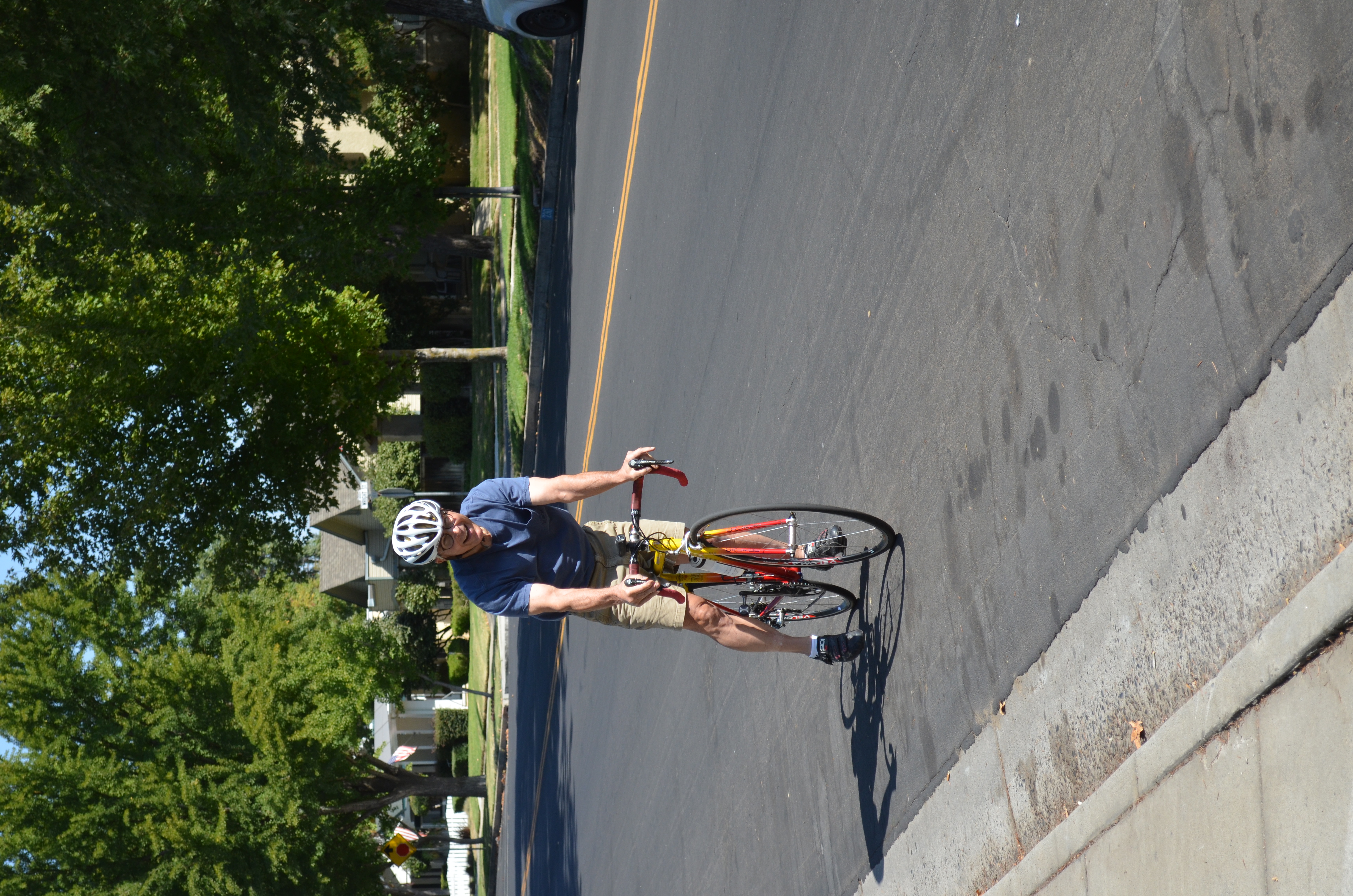 We had no plan, but ended up stopping after four laps of the park. Back in the day, as Junior (younger than 18) racers, we raced around this park 25 times, and the Senior riders did it 50 times. This is Eldon dismounting at lap 4.