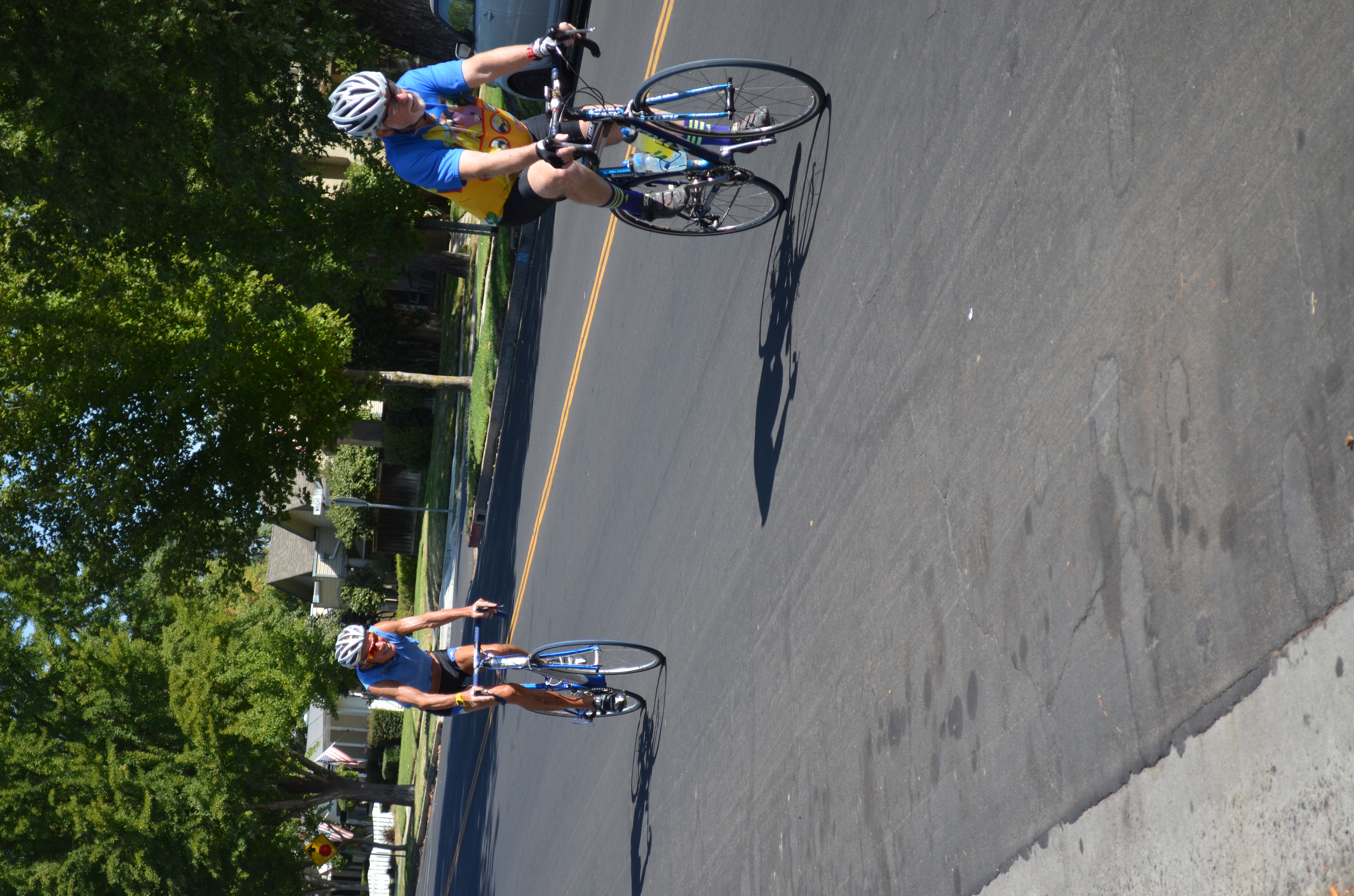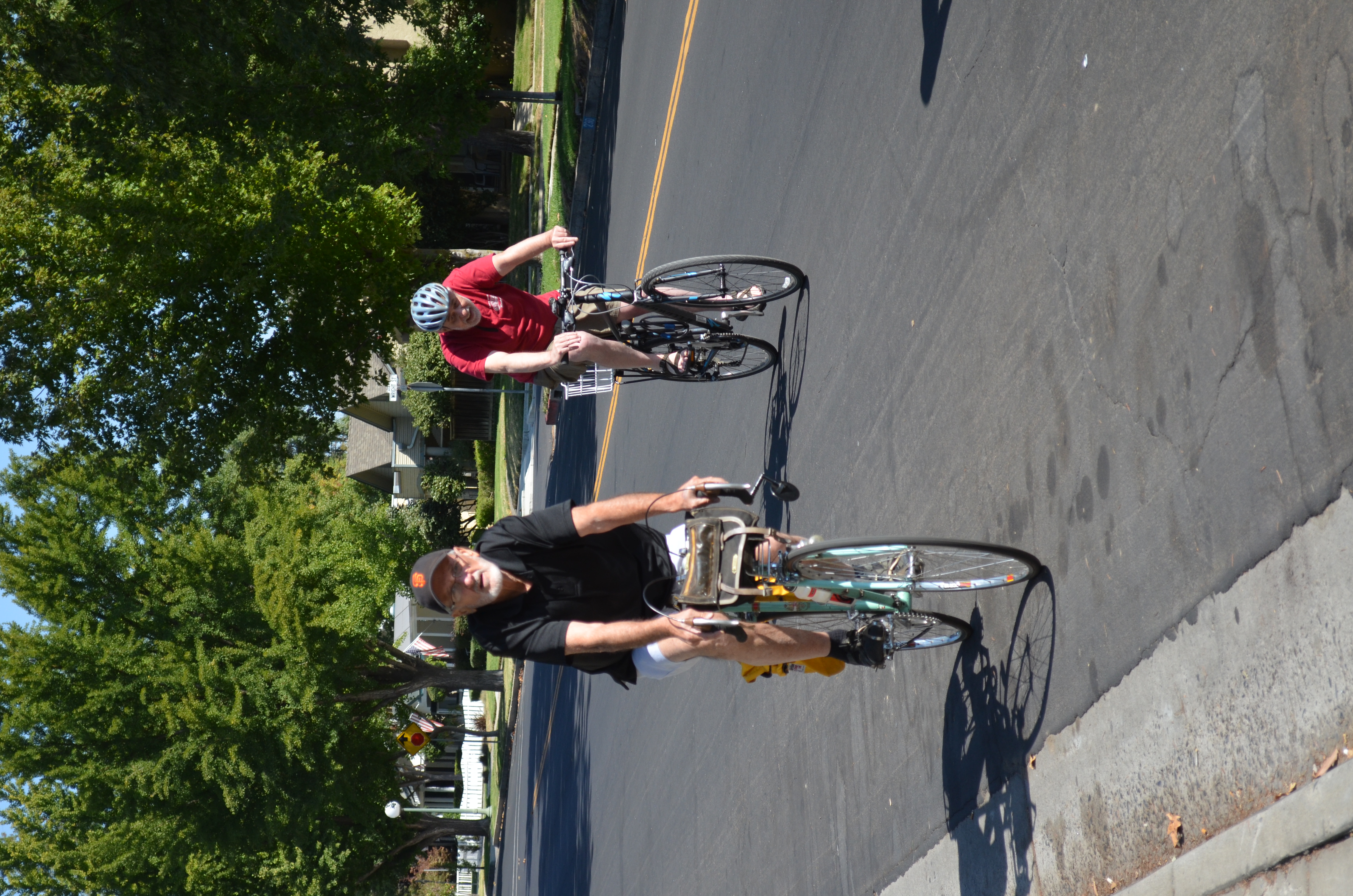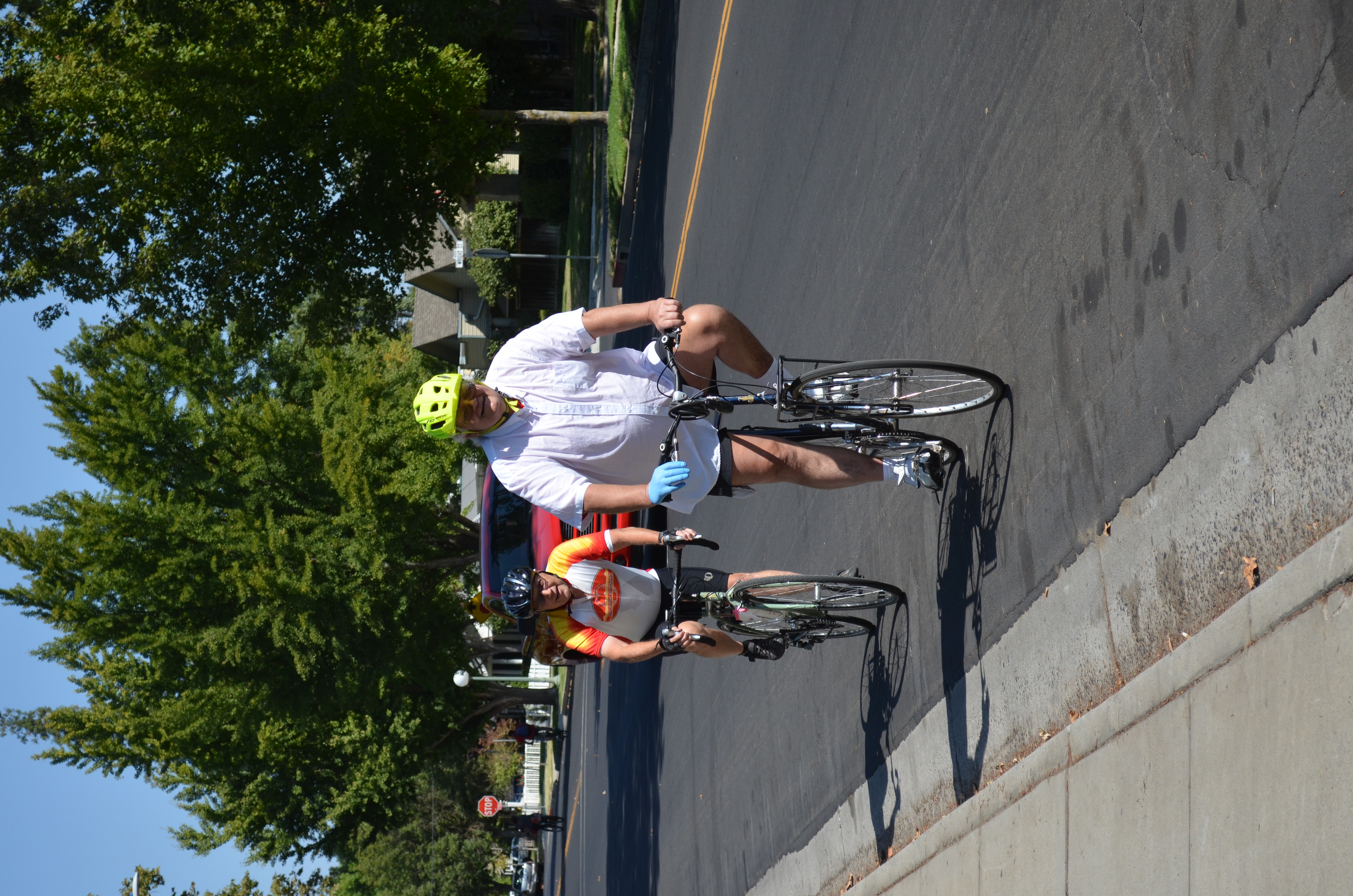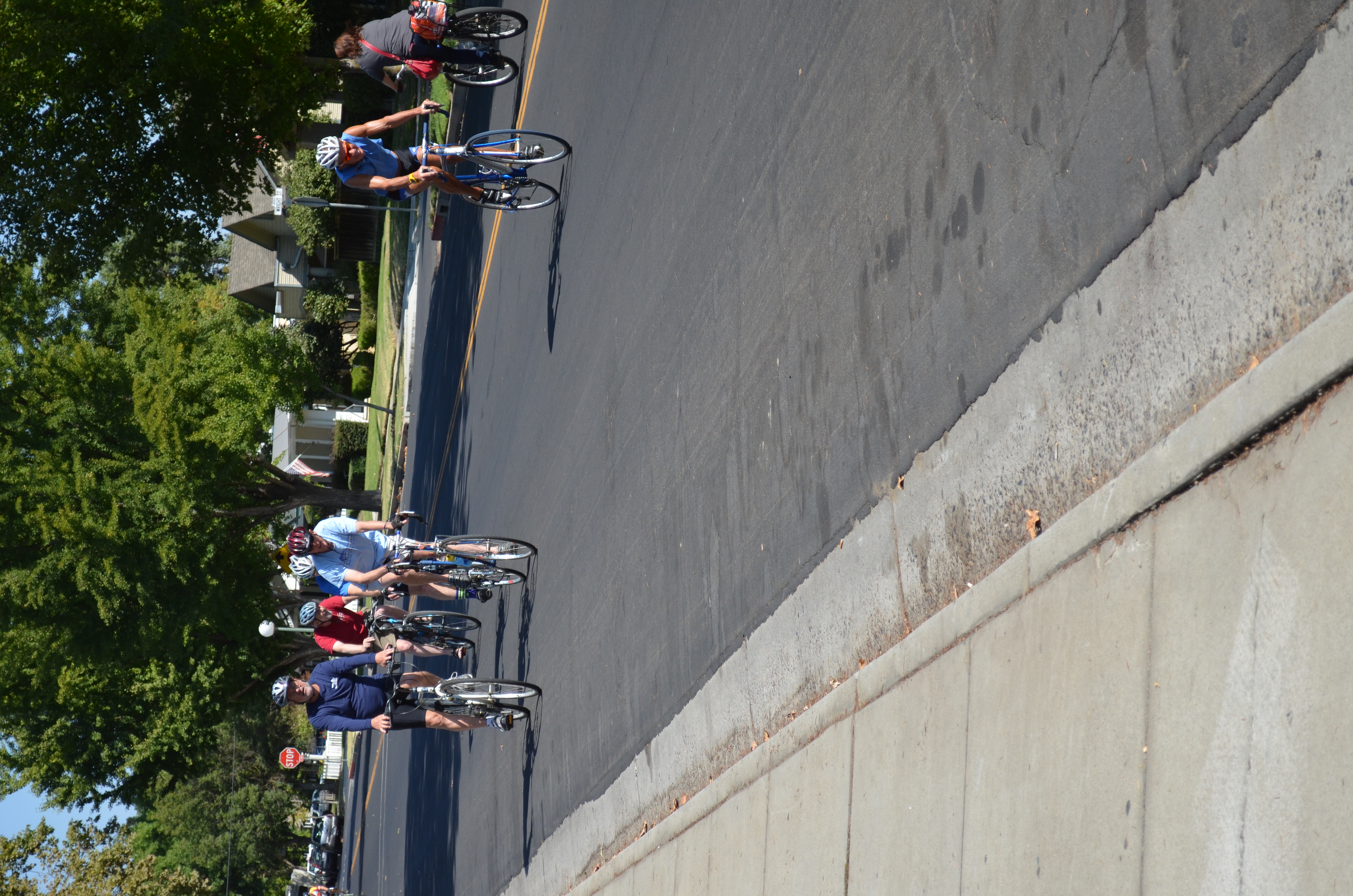 We had no plan, but ended up stopping after four laps of the park. Back in the day, as Junior (younger than 18) racers, we raced around this park 25 times, and the Senior riders did it 50 times. This is Eldon dismounting at lap 4.