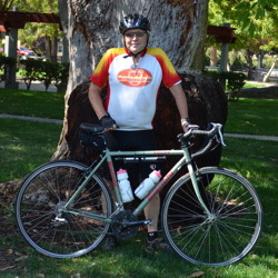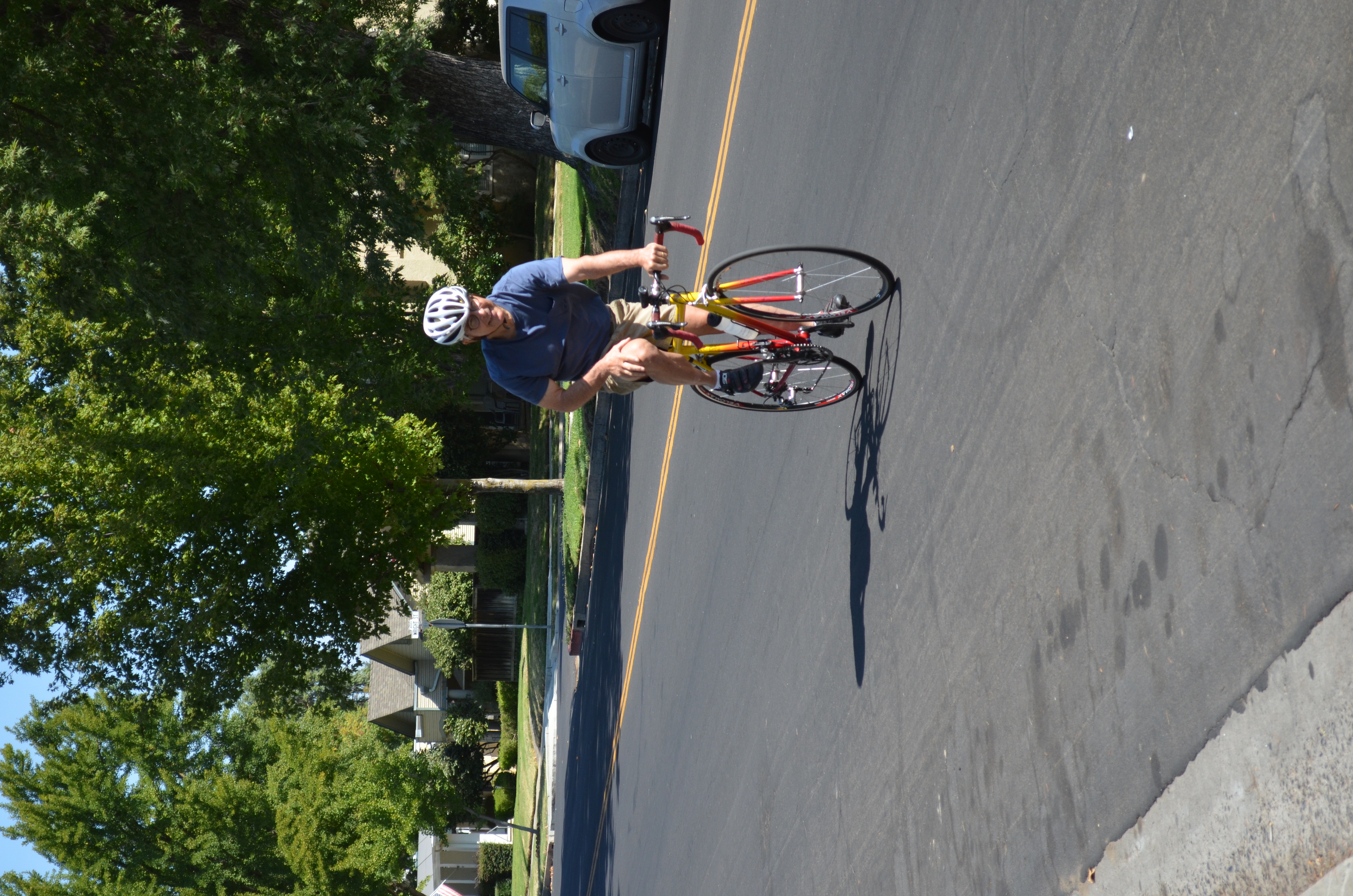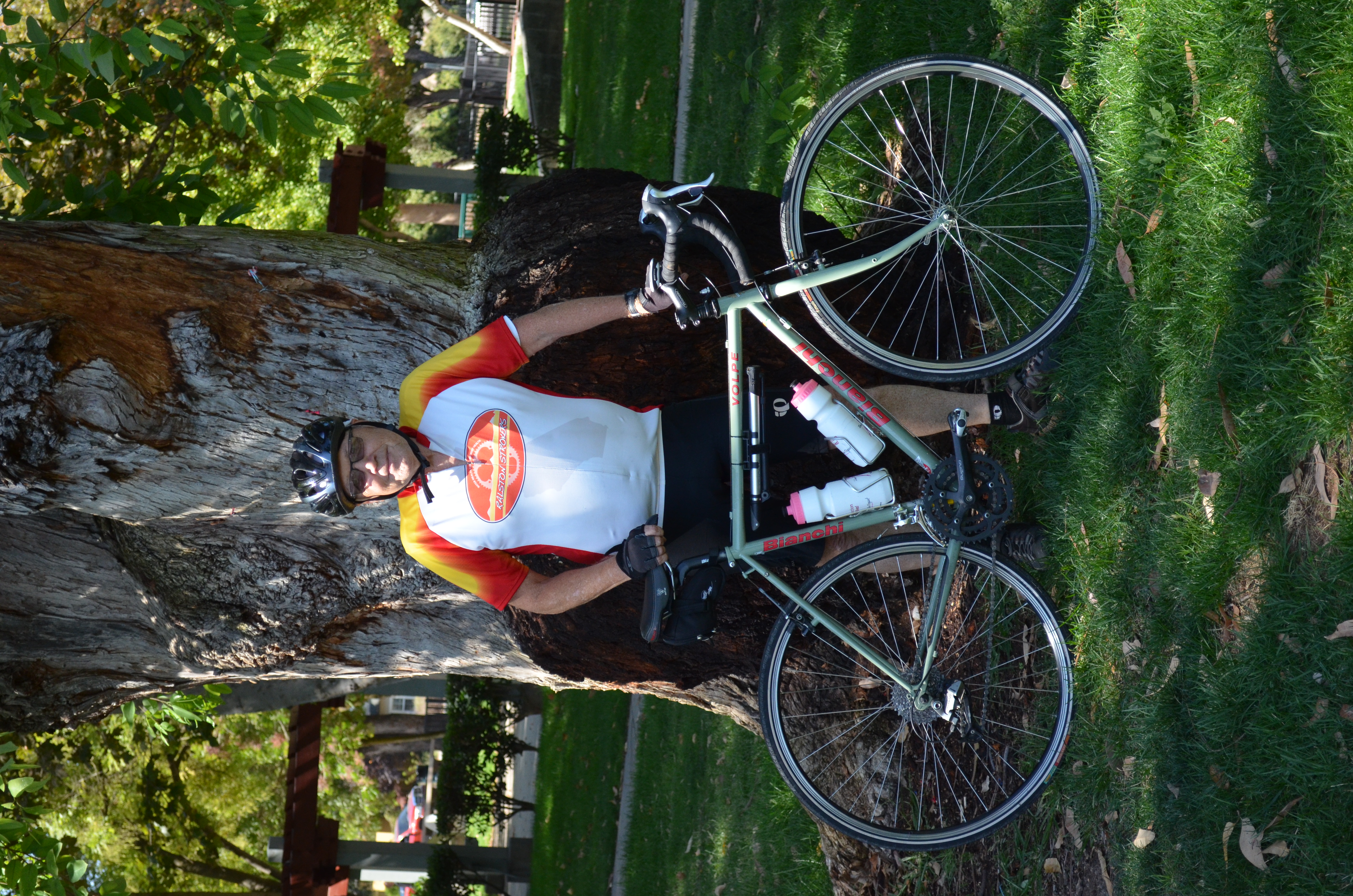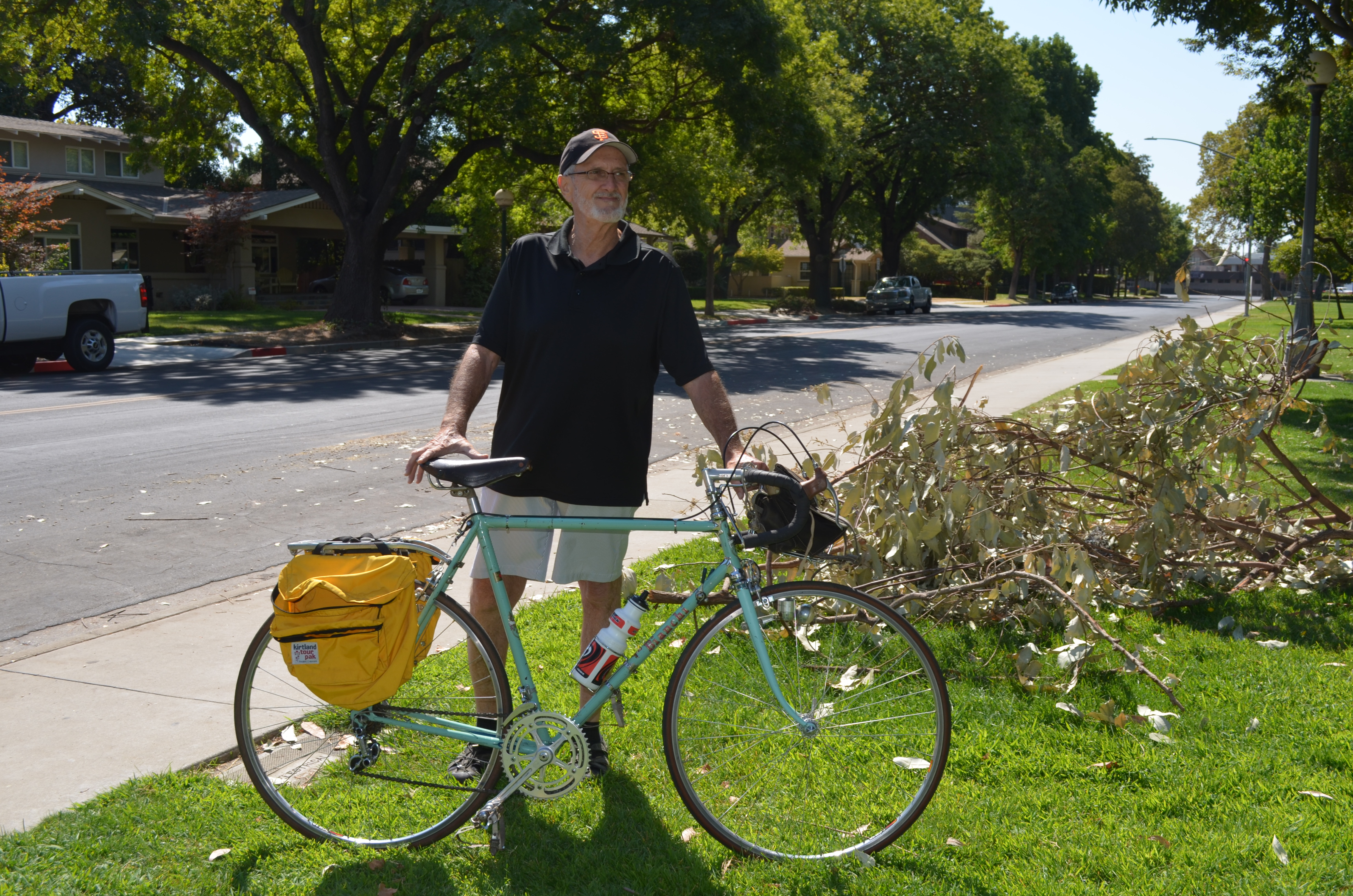 David showing off his Bianchi Volpe. When he was spending a lot of time in California helping to care for his sick parents, his family bought him this bike to have as a "California bike", since his other bikes were all in Texas.