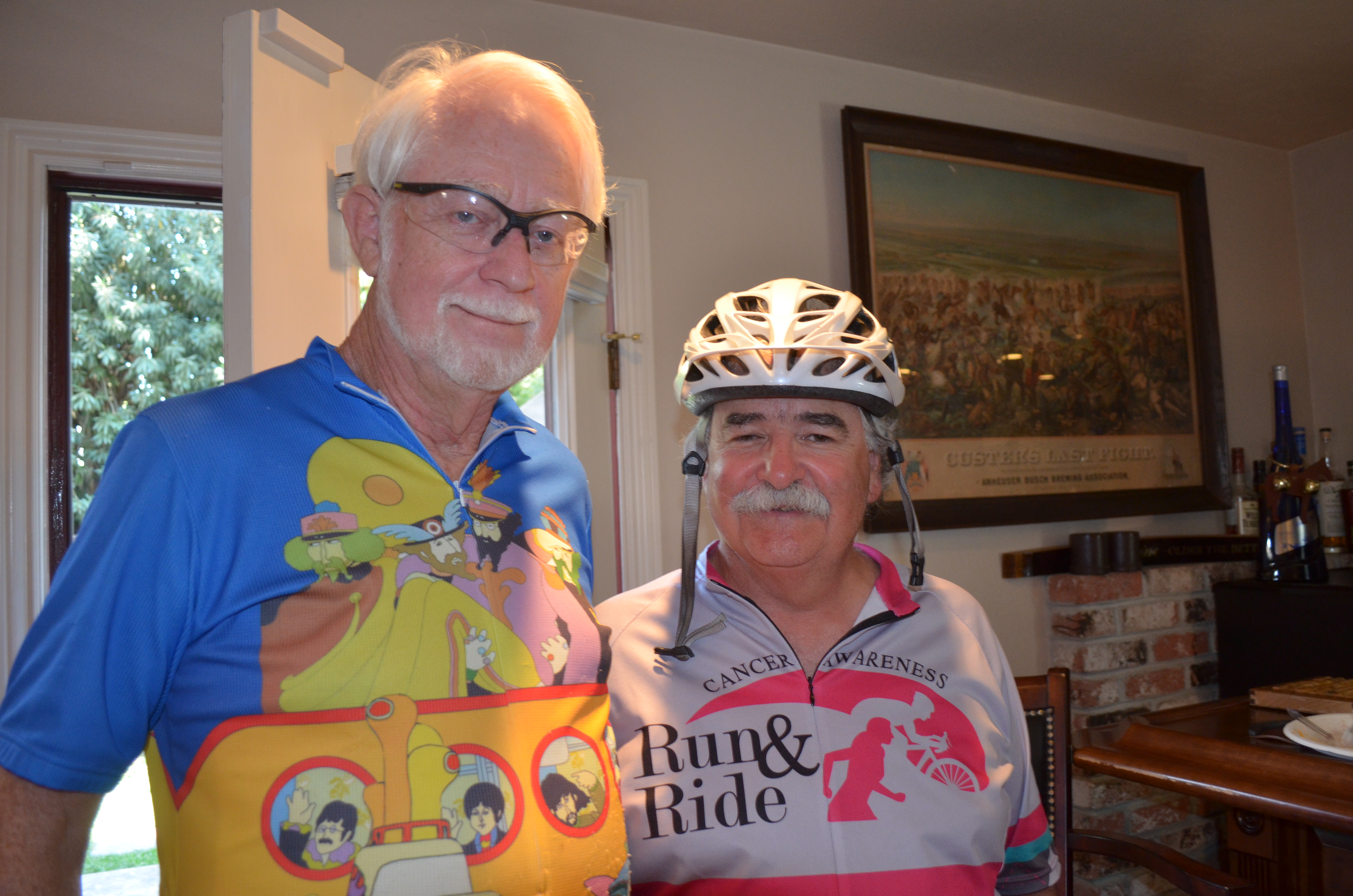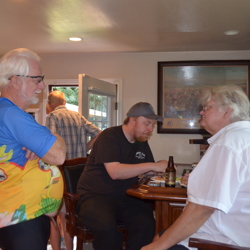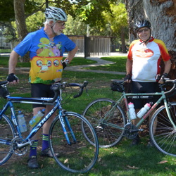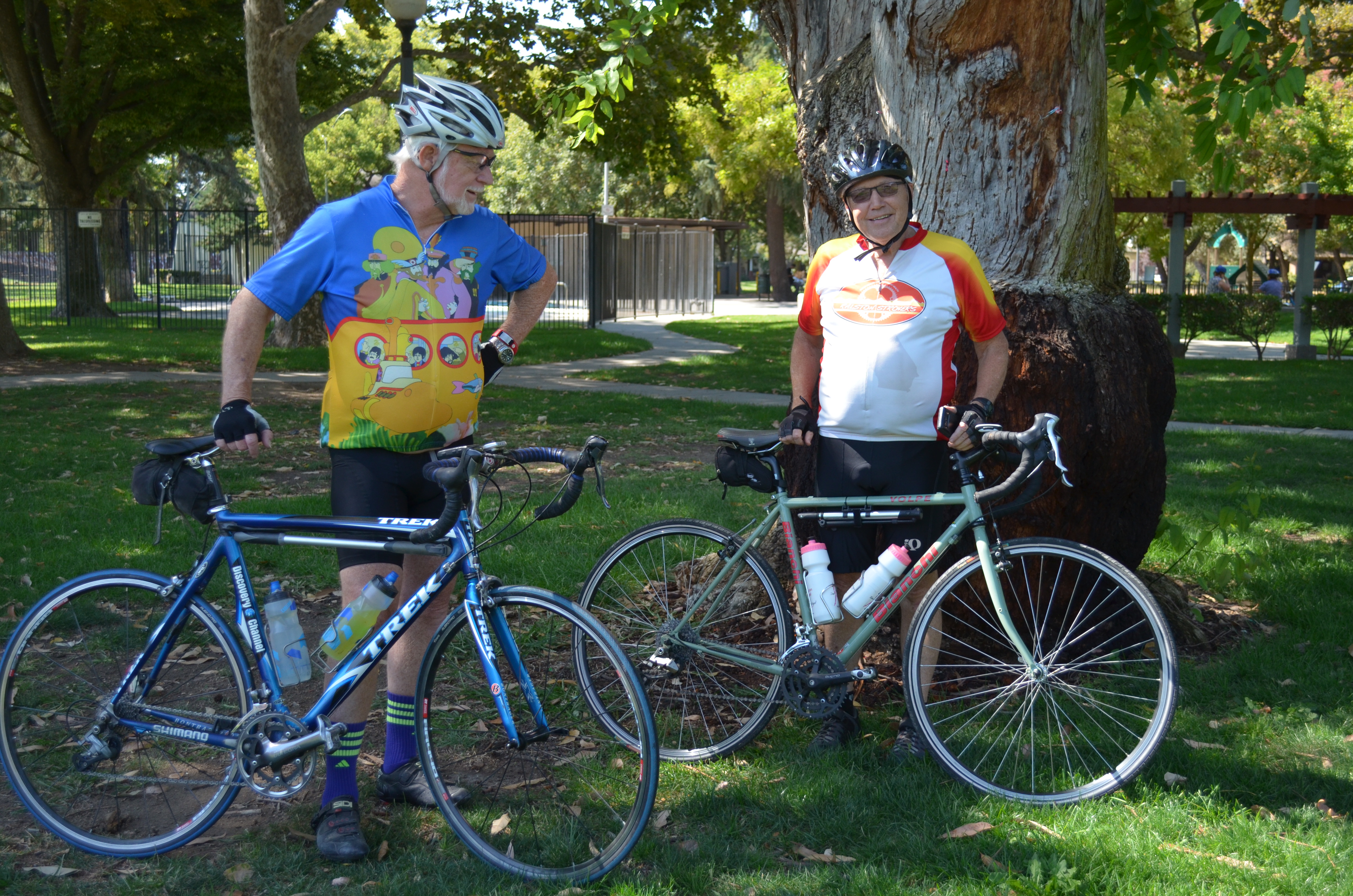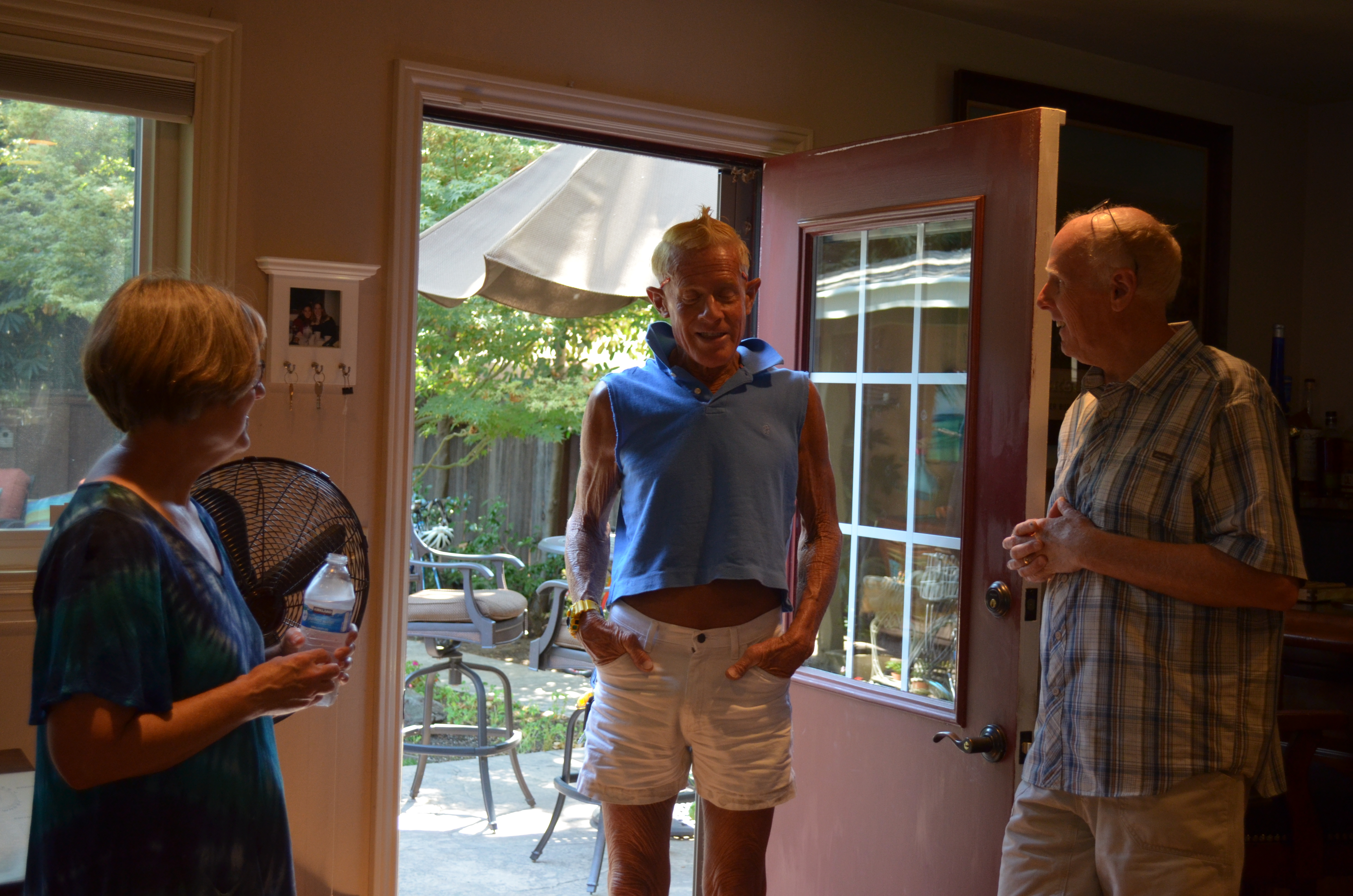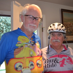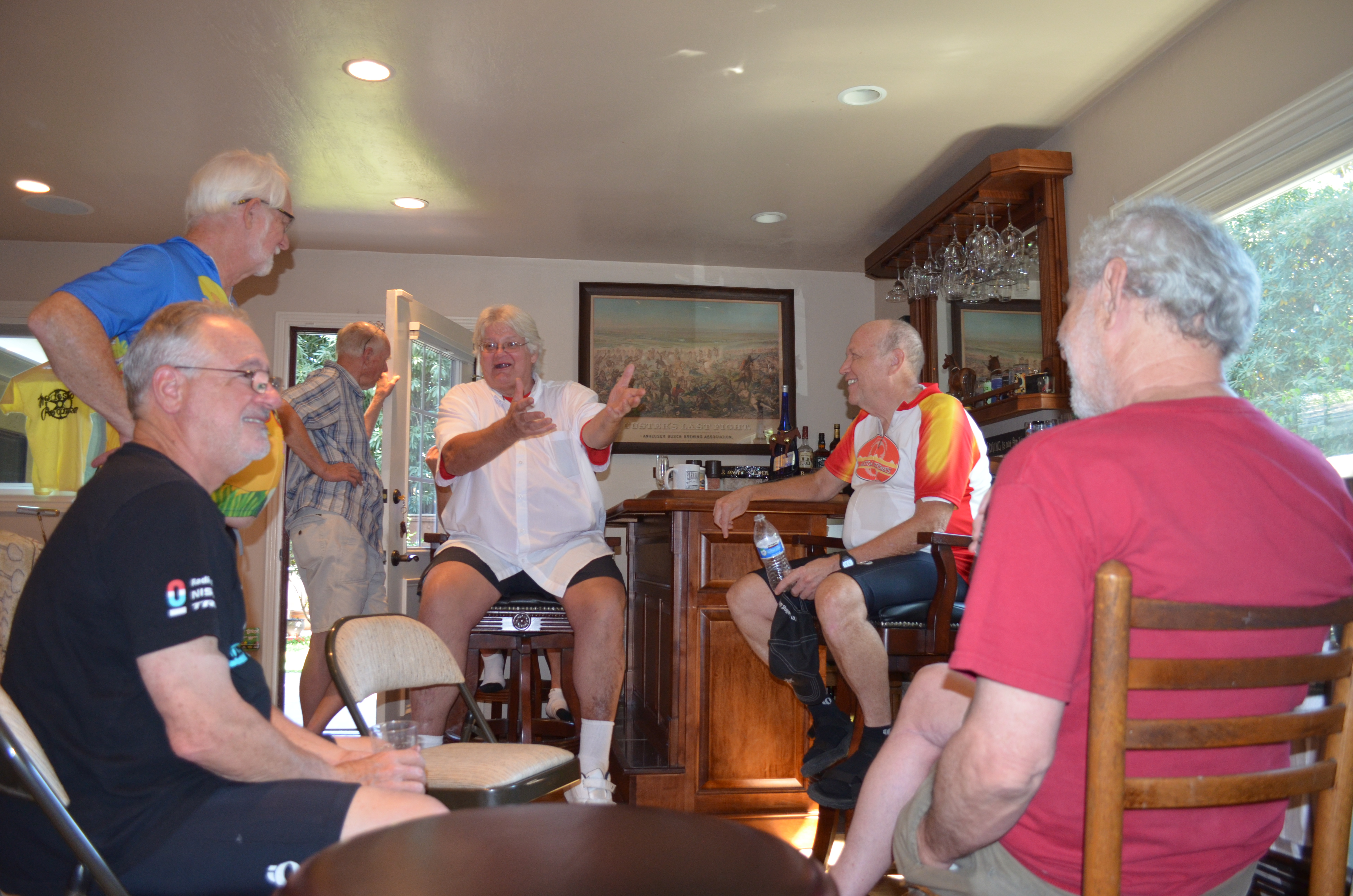 Paul and Tom Duchscher. Tom is a neighbor of John's and an avid cyclist so when he saw us, he could not help but crash the party. He regaled us all with tales of cycling in Modesto in the 60s. Way back when Paul and I were trying to connect with the other Modesto Roadmen, someone told Paul that Jeff had died, but Paul couldn't remember who. Tom confessed that it was him, but then he could not remember where he heard it.