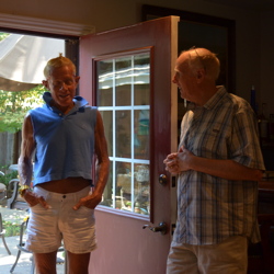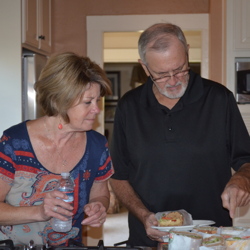 Wendy, our generous hostess, watching Tom partake of her largess. I wish we had taken more pictures of the wonderful food they provided!