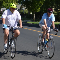 Paul Robinson started this whole thing. One day, in the spring of 2008, my phone rang. "Hello?" "Mountain Loooop!!" It was Paul. For no particular reason he decided to look me up after 41 years. One thing led to another, and one by one, we made contact with more of the Roadmen. In 2013, Paul and I got together for a bike ride. In 2014, I started putting together this website. And then we had an idea, we should have a reunion. Since we had no idea when the Modesto Roadmen was founded, we picked an important date, the 50th anniversary of the first running of the Tour de Graceada, contacted everyone we could, and scheduled a reunion. John Campopiano and his wife Wendy graciously offered to host it, and since they live a few blocks from the site of the Tour de Graceada, that gave us the opportunity to do a symbolic ride of that course.