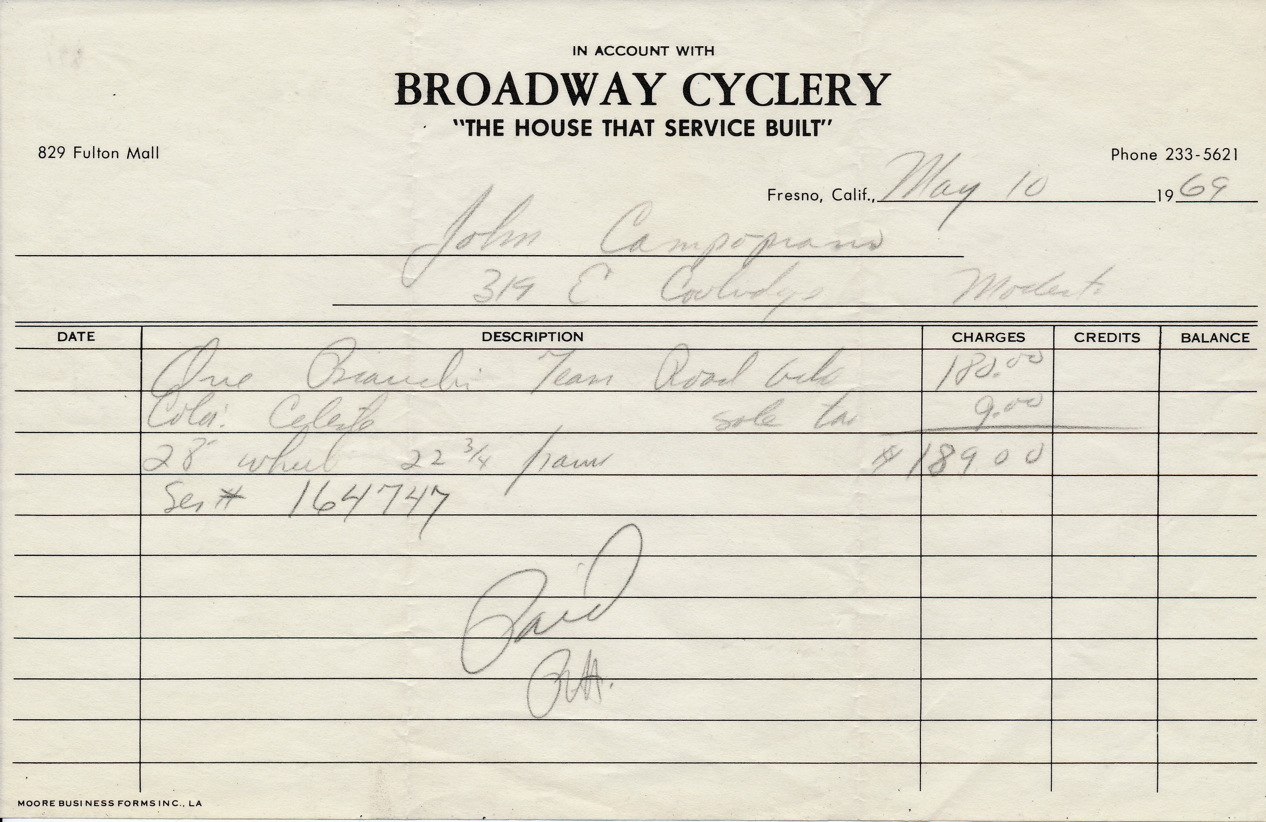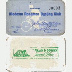 These last three pictures show the numbers we would pin on the backs of our jerseys when we raced. These three numbers were provided by John Campopiano.