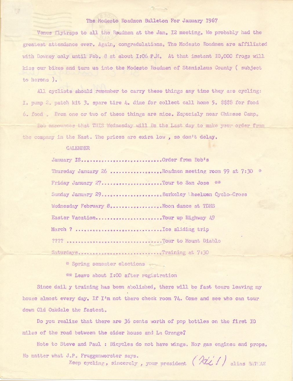 January, 1967 Newsletter