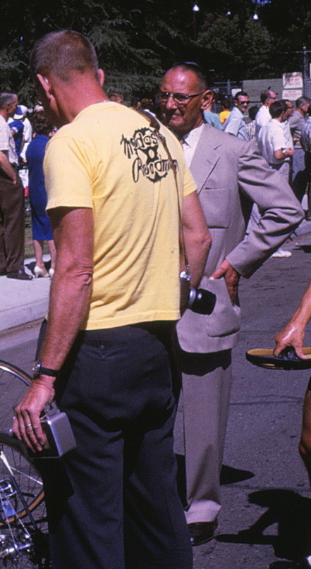 Henry Laws was a neighbor of David Steffen who took an interest in him. When his attempt to interest David in Boy Scouts failed and instead David, along with his friends Paul Robinson, Tom Woods, and Jeff Cowdrey, formed the Modesto Roadmen on their own, Henry got involved with the that. He purchased a tandem bicycle for him and his wife (a Schwinn Twinn) and when we started including social rides, rode along with us. At first, we indulged him, and didn't initially get what he was doing when he interested the local newspaper in our activities. However, when we got involved in bicycle racing and found out we were expected to "give back" by organizing our own race, we quickly discovered we could not do that without him.